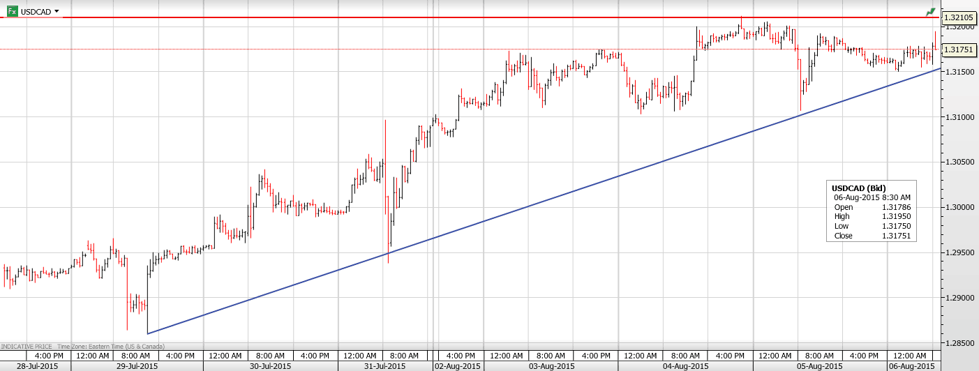 The intraday technicals are bullish while trading above 1.3150 with a break of 1.3200 likely to extend gains to 1.3300. A break of intraday support at 1.3150 will lead back to 1.3110. Longer term, the USDCAD uptrend remains intact above 1.3005. For today, USD support is seen at 1.3150 and 1.3110. Resistance is at 1.3210 and 1.3240