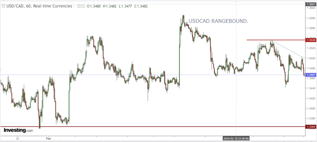 The Bank of Canada monetary policy meeting is on March 6, and the FOMC meeting is on March 20. Barring a major geopolitical event, USDCAD has nowhere to go and is likely stuck in a 1.3360-1.3660 range.