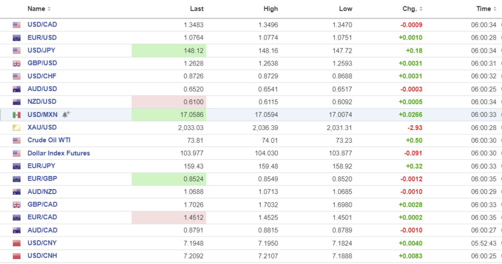 FX high, low, open (as of 6:00 am ET)