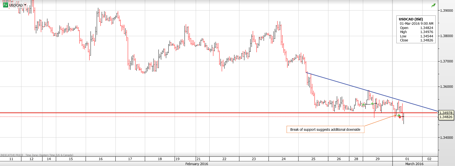 Canadian Q4 GDP data surprised to the upside and USDCAD dropped. Real GDP grew 0.2% in Q4 following a 0.6% increase in Q3, handily beating estimates and greatly diminishing prospects for Bank of Canada policy action on March 9. That was all USDCAD bears needed to see. USDCAD dropped to 1.3458 from 1.3520 but the decline stalled in the 1.3460 support area and USDCAD bounced back to 1.3490