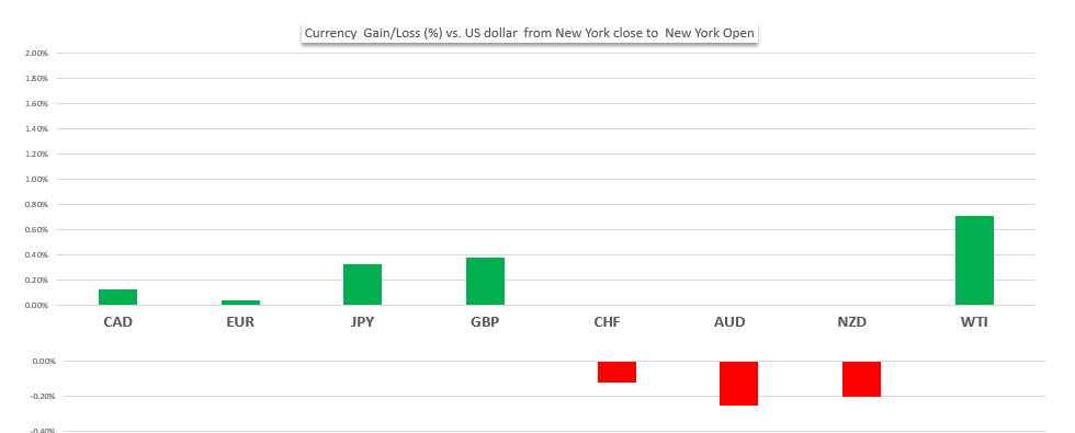 The US dollar opened in New York with small losses against the G-10 major currencies except for the CHF, AUD and NZD.
