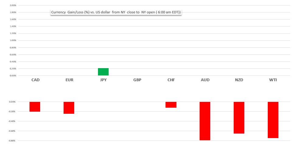 Chart: Currency gain/loss (%) against the US dollar from New York close to New York open