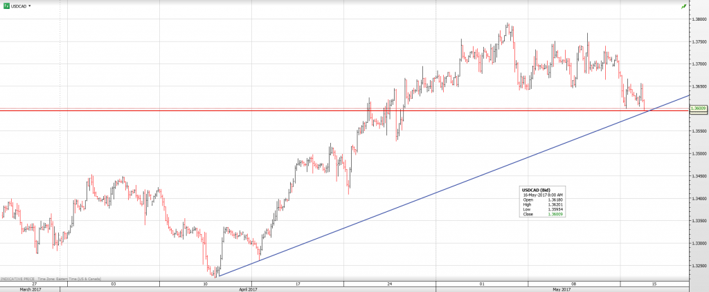 USDCAD is probing support at 1.3600 after rejecting an overnight attempt a breaking back above 1.3660.  A rebound in oil prices is behind the move.  WTI allied from a European low of $48.72 to $49.25 immediately after weaker than expected April US Housing Starts and Building Permits data. It quickly settled back to $49.05/barrel.  The Easter/Passover holiday’s may have contributed to the weak data.