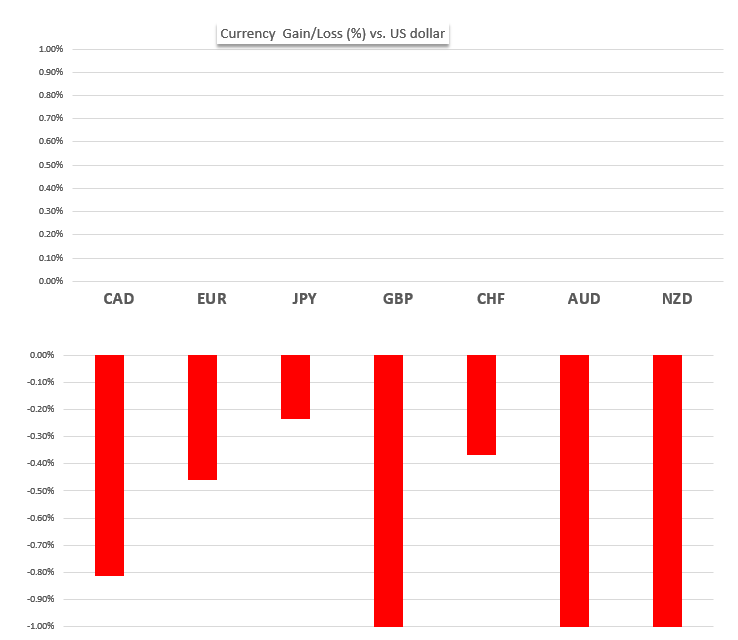NOTE:  This chart represents gain (or loss) of  G10 currencies vs. the US dollar  from NY close-July 18 (4pm) to NY Open  July 19, 6:00 am PST