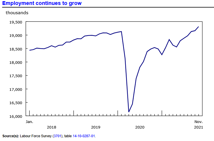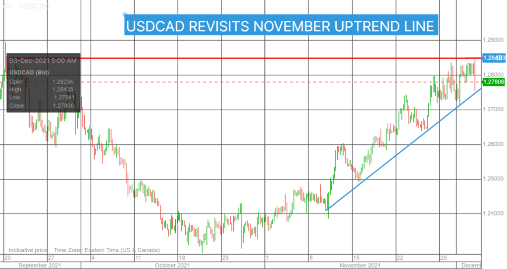 USDCAD plunged from 1.2840 pre-employment data to 1.2764 immediately after Stats Canada reported 153,700 new jobs in November and the unemployment rate dropped to 6.0% from 6.7%. It is a solid report with private sector employment rising 107,000. Total unemployment fell to 1.24 million but remained 98,000 higher than in February 2020