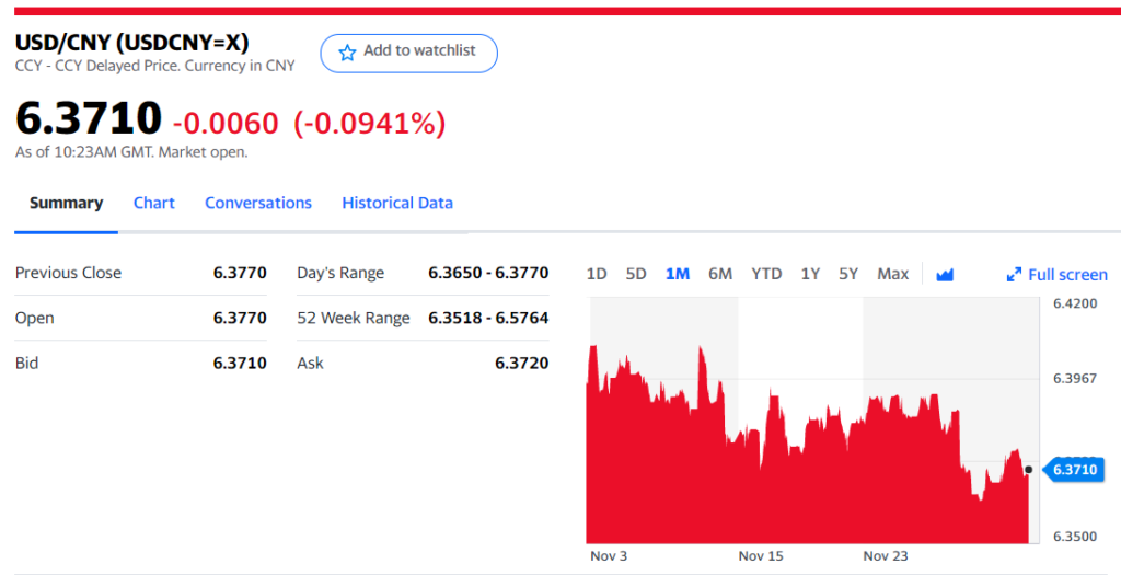 Chart: USDCNY 1 month