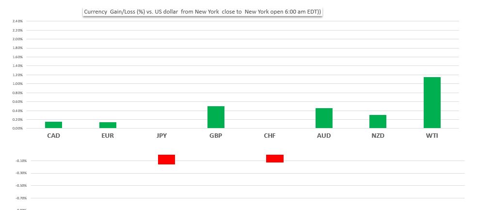 Change in currency value against the US dollar from New York close to New York open