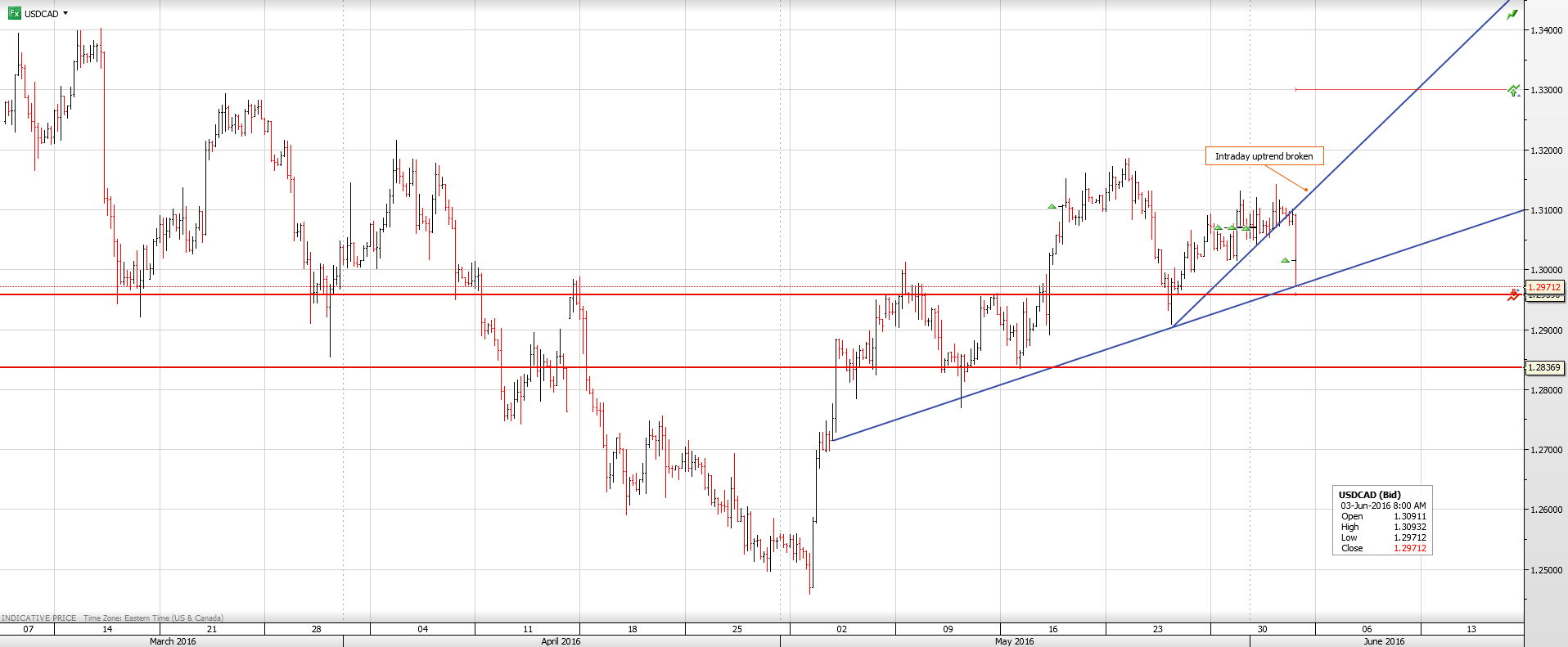 Today’s US nonfarm payrolls headline was ugly. May NFP gained a mere 38,000 jobs and USDCAD dropped like a rock, falling from 1.3080 just before the release to 1.2963 immediately afterwards. Ouch!.