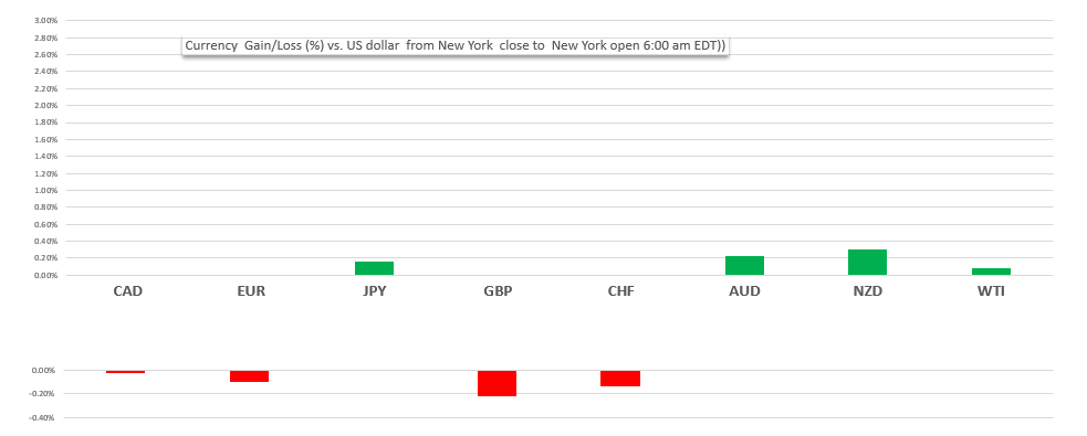 Change in currency value against the US dollar from NY close to NY  open
