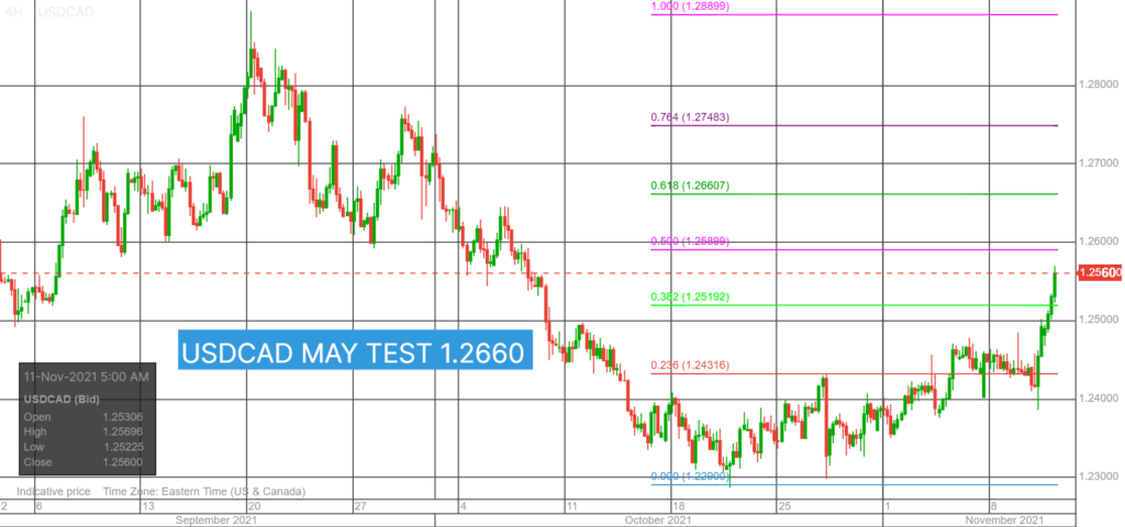 USDCAD soared rising from 1.2386 around the 10:00 am ET option expiry window to 1.2583 in NY trading today. The rally was due to broad US dollar demand after the hotter than expected October US CPI data (actual 0.9% m/m vs forecast o.6% m/m) drove the US 10year Treasury yield from 1.422% to 1.57% today.