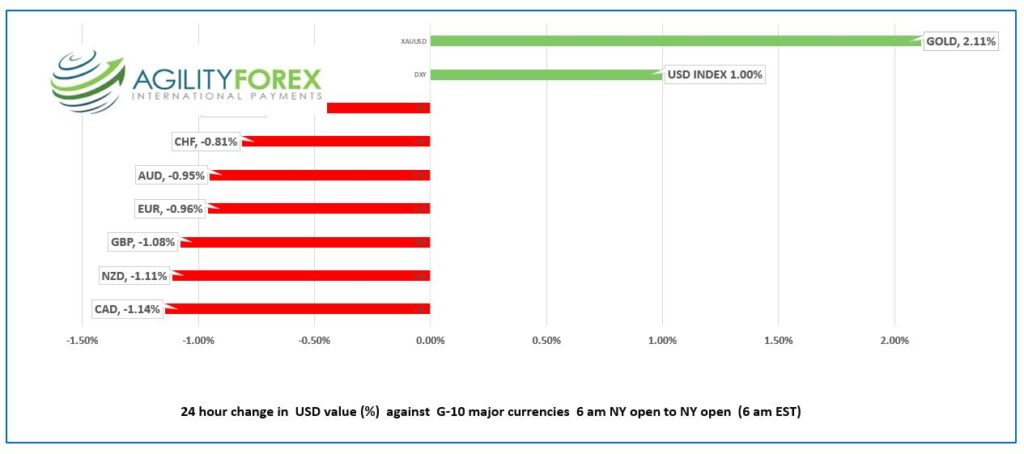 The US dollar soared against the G-10 majors, as did the traditional inflation hedge gold, which climbed to $1,865.09 today. A week ago, XAUUSD traded at $1,761.00.