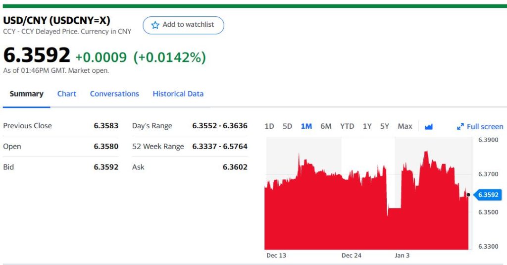 Today’s Bank of China Fix 6.3542, previous 6.3658