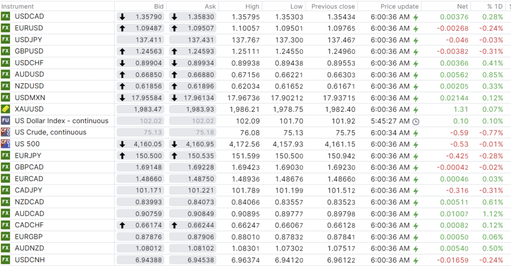 USDCAD Snapshot: open 1.3579-83, overnight range 1.3530-1.3585, close 1.3543