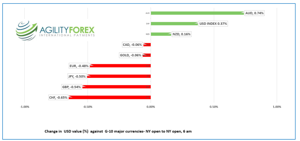 - US dollar opens higher compared to Monday; AUDUSD outperforms.