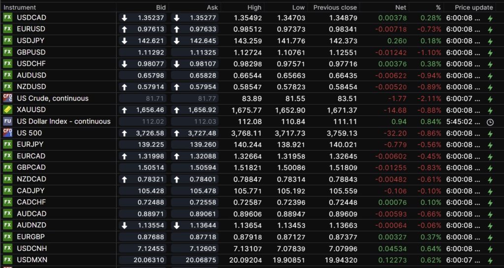 GBPUSD is getting hammered, with prices plunging from 1.1272 to 1.1053 in NY. The currency has lost 3.5% since Monday, despite a mini-budget and a Bank of England rate hike. The BoE raised rates 0.50% by the Monetary Policy Committee showed they were confused about how to manage the economy. One member wanted just a 0.25% bump, while three others wanted a 100 bp increase. Traders decided that if the BoE didn’t know what to do, selling GBPUSD made sense.