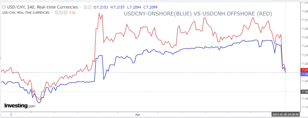 Caixin Services PMI was 52.5 in April, as expected. S&P Global wrote: “The Caixin China General Manufacturing PMI came in at 51.4 in April, up 0.3 points from the previous month, the highest reading since February 2023. It also marked the sector’s sixth consecutive month of growth as the overall market continued to improve. Both supply and demand expanded at a faster pace amid the market upturn.”