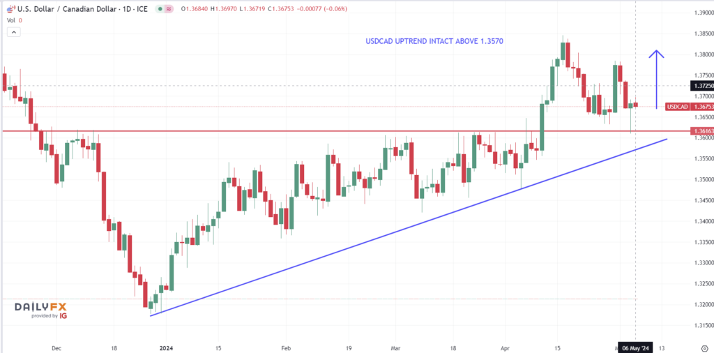 USDCAD Snapshot: open 1.3676, overnight range 1.3672-1.3698, close 1.3687