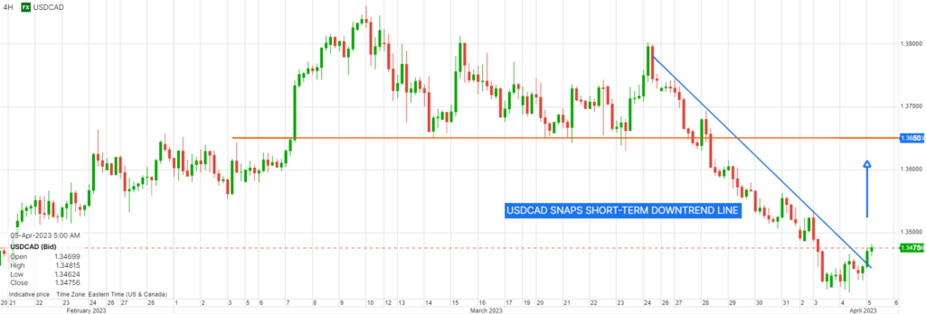 NZDUSD soared from 0.6306 to 0.6379 following a surprise 50 bps rate hike by the Reserve Bank of New Zealand. The RBNZ increased its Overnight Cash Rate (OCR) to 5.25% from 4.75% stating that “Inflation is still too high and persistent, and employment is beyond its maximum sustainable level.”