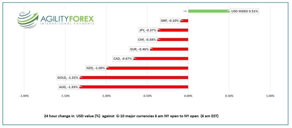 FX price action continues to be fueled by Fed Chair Powell’s hawkish flip and free-falling equity markets.