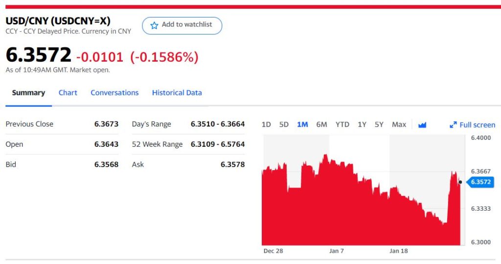 Today’s Bank of China Fix 6.3746, previous 6.3382