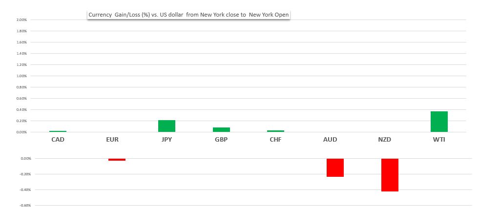 Change in Currency value vs the US dollar-   NY close  to NY open