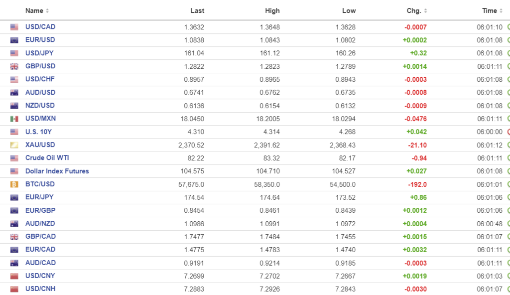 FX high, low, open (as of 6:00 am ET)