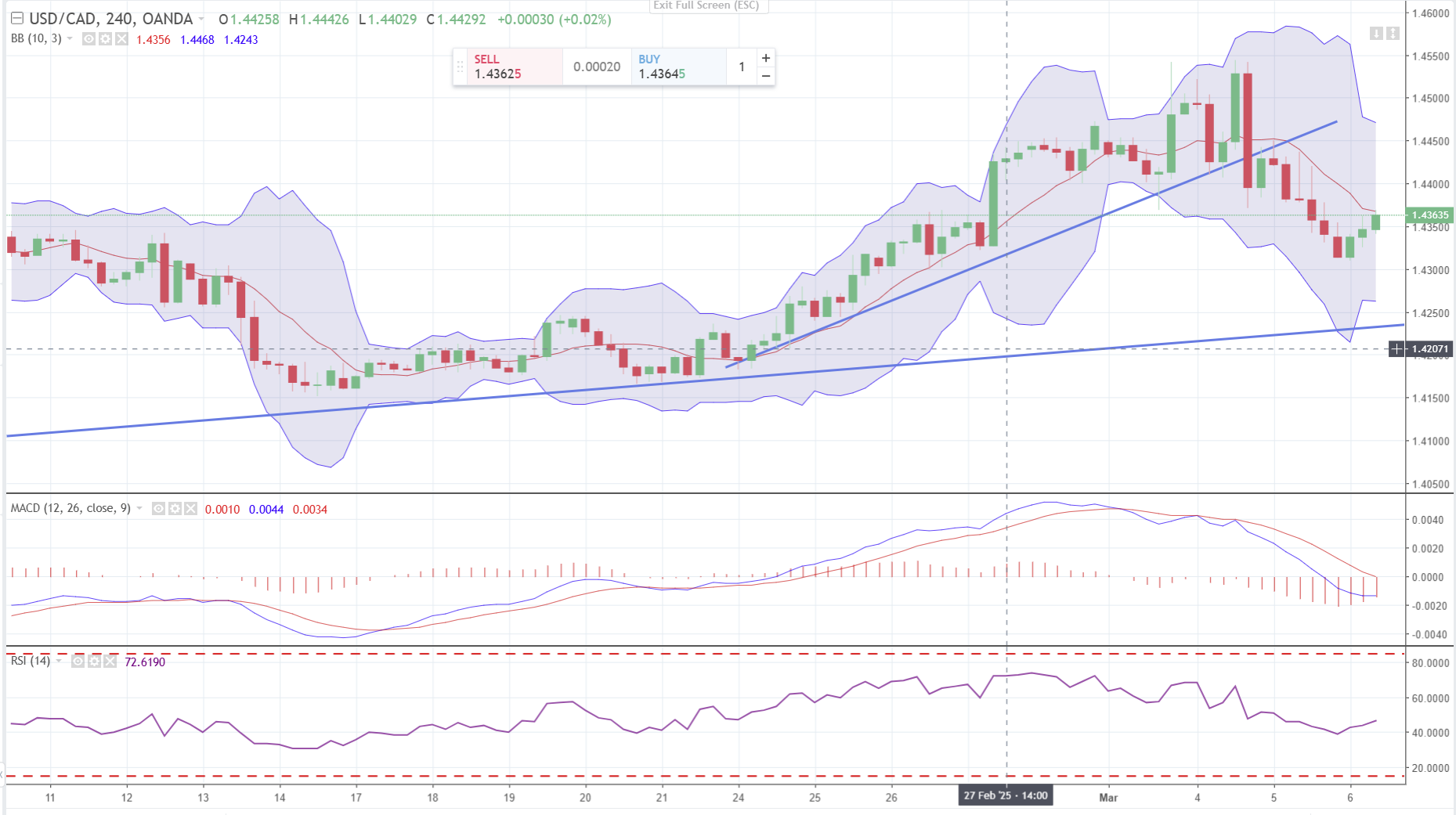 USDCAD Technicals.