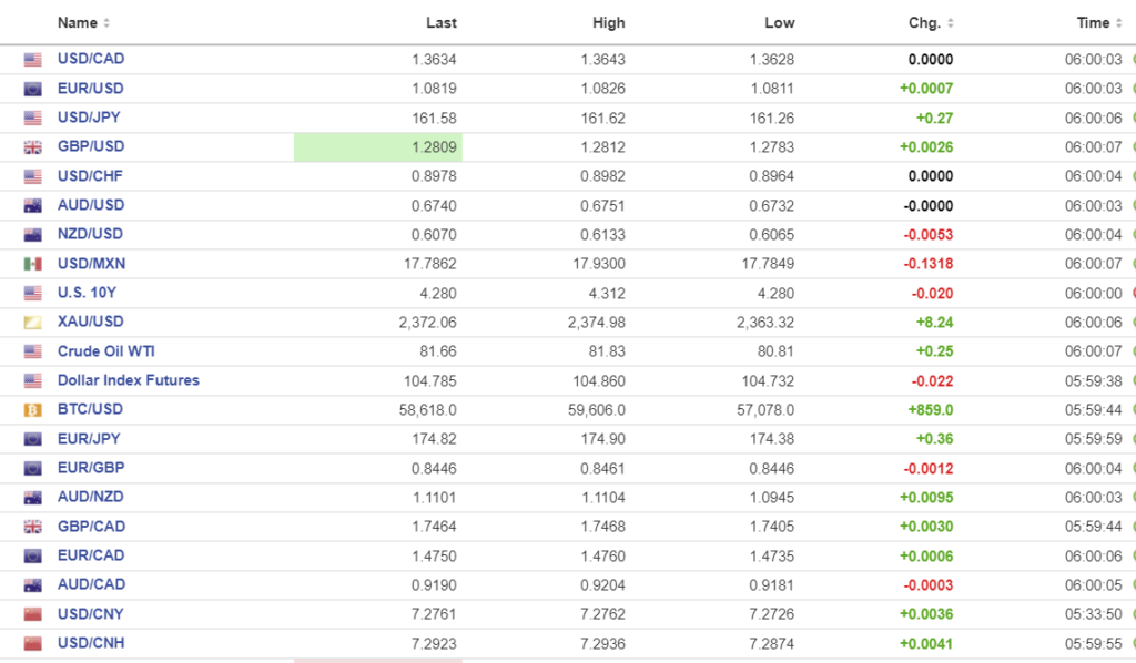 FX high, low, open (as of 6:00 am ET)