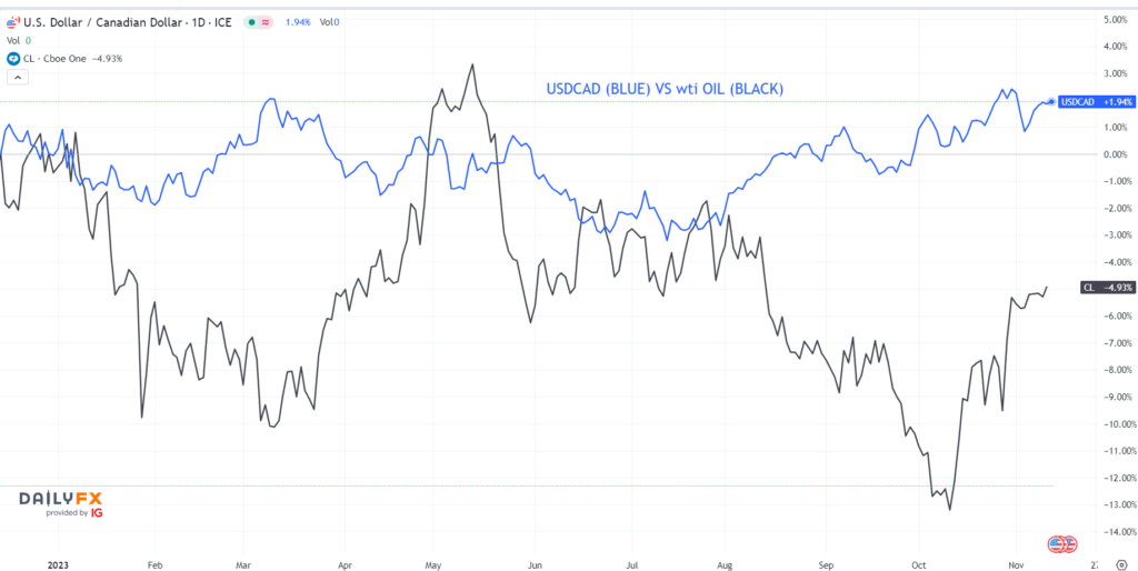 Chart: USDCAD and WTI oil daily