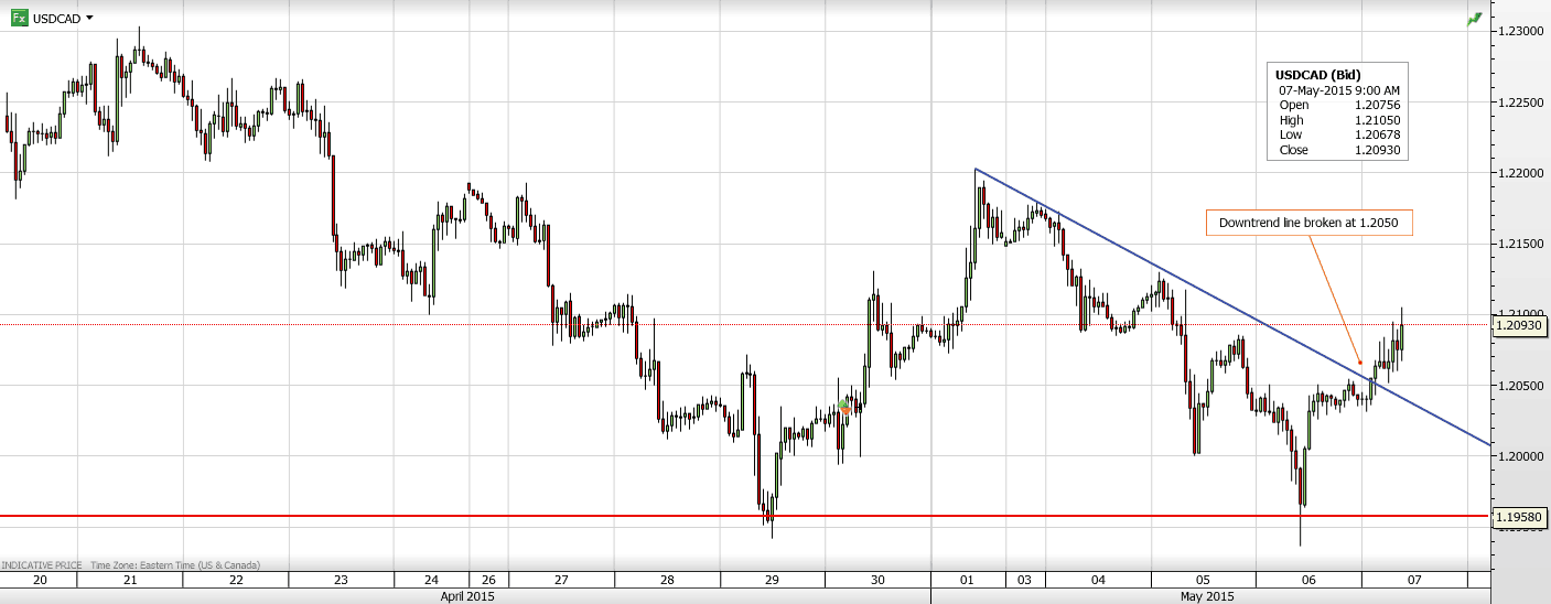 Chart: USDCAD 4 hour with intraday downtrend shown