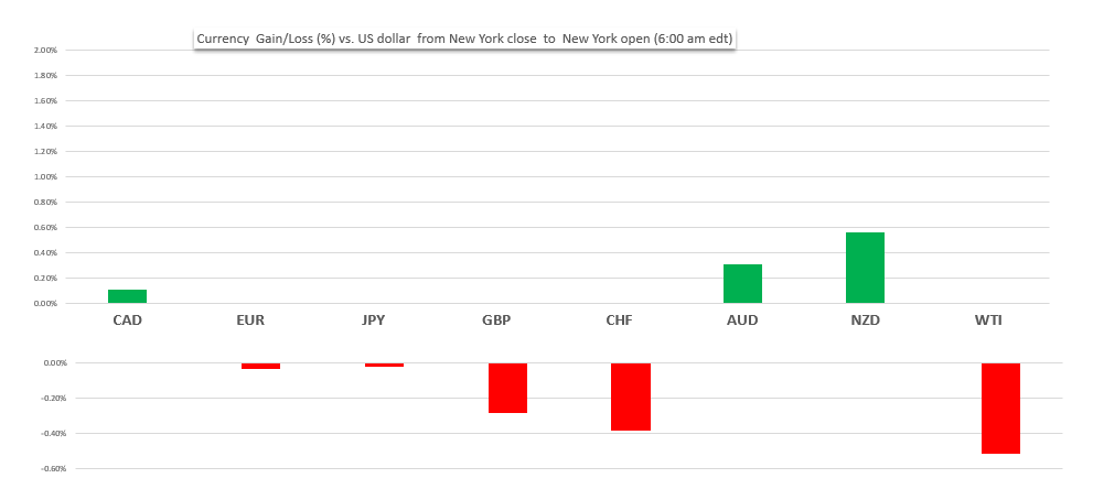 Change in Currency value vs the US dollar-   NY close  to NY open