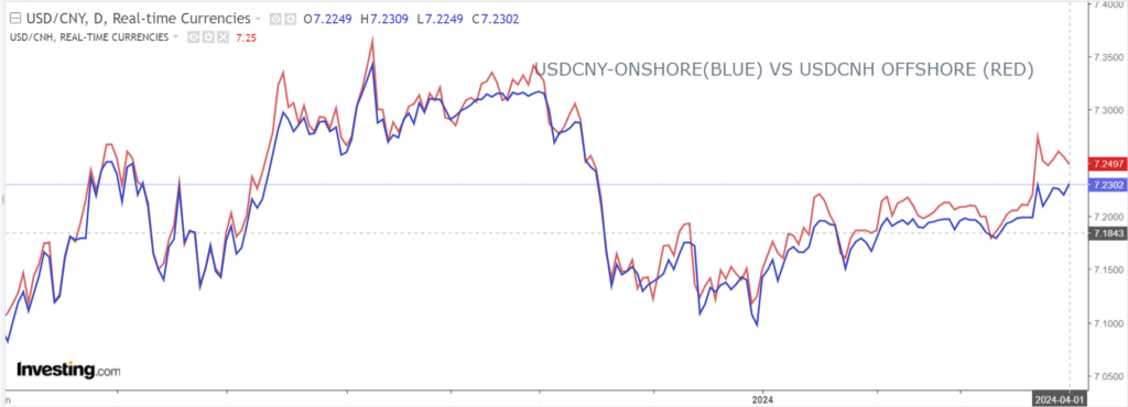 Chart: USDCNY and USDCNH 4 hour