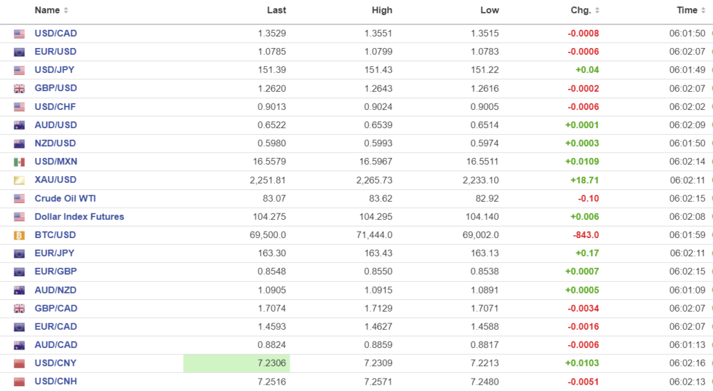 FX high, low, open (as of 6:00 am ET)