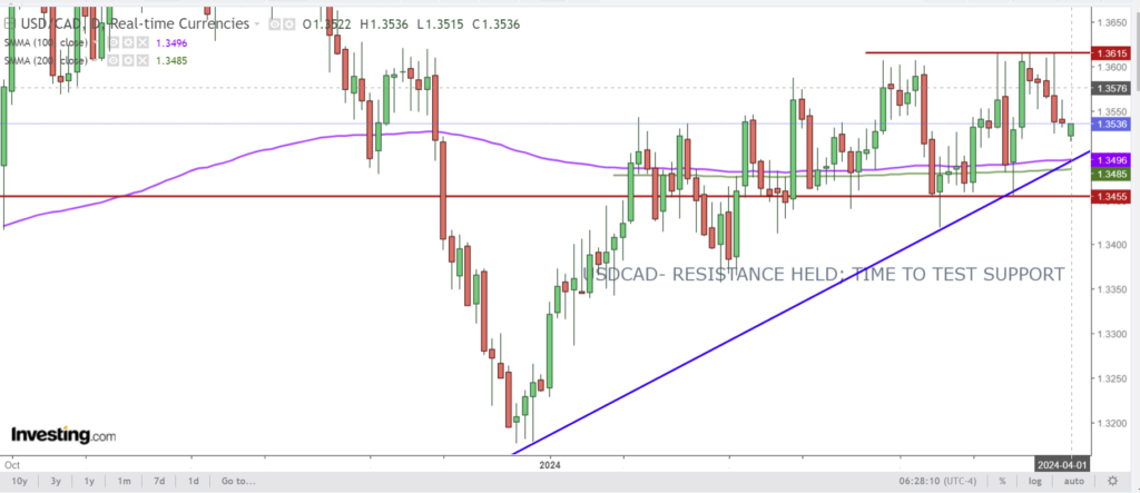 USDCAD is consolidating its losses from Thursday, which were due to a mix of month and quarter-end portfolio rebalancing, US dollar sales, and better than expected January GDP results. The 0.6% rise in January, combined with Statistics Canada’s 0.4% estimate for February growth, has many economists upwardly revising their 2024 growth projections. If the trend continues, the Bank of Canada may not be very motivated to cut interest rates before September.