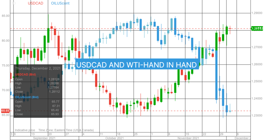 Chart USDCAD and WTI 4 hour