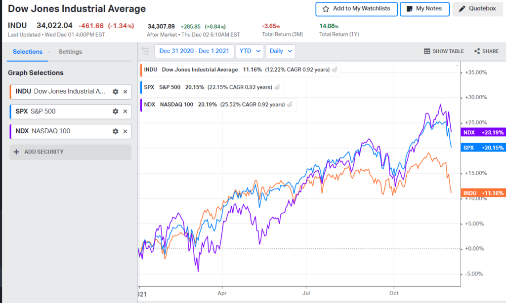 The reality is “it ain’t that bad.” The S&P 500 dropped 3.8% from November 24 to December 1 but has risen 20.15% since closing December 31, 2020. That’s a pretty good performance for an index with 10-11% historical returns between 1928 and 2018.