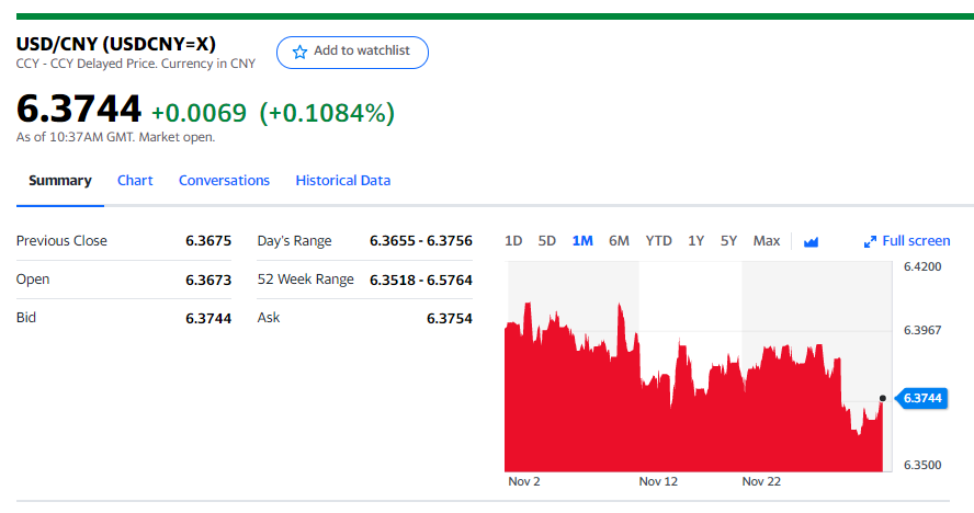 Chart: USDCNY 1 month