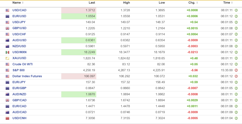 FX high, low, open