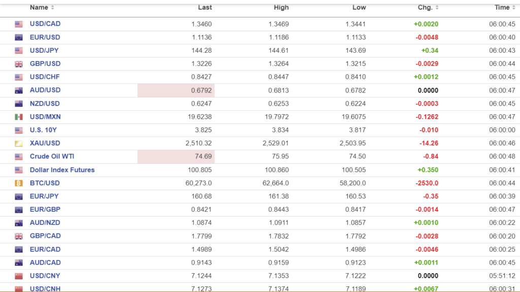 FX high, low, open (as of 6:00 am ET)
