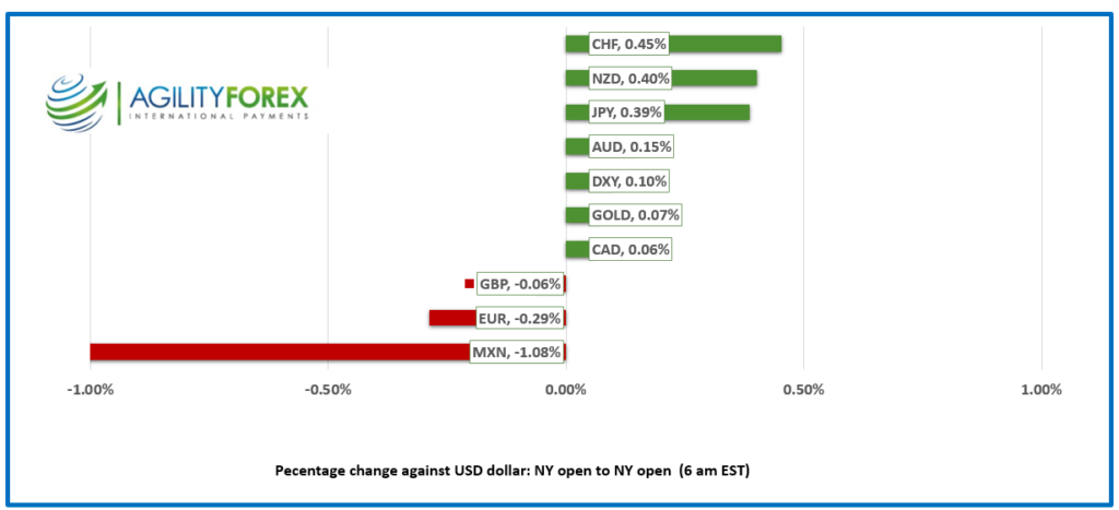 USDMXN has a bit of a bid and rose from a low of 19.3507 yesterday to 19.7972 overnight. The greenback caught a bid after Mexico’s outgoing President, Manuel Lopez Obrador, announced a pause with U.S. and Canadian embassies in the country due to criticism of proposed judicial reforms. It is merely theater, as the Mexican government went to great pains to stress that the pause was just with the embassies, not with the USA or Canada.