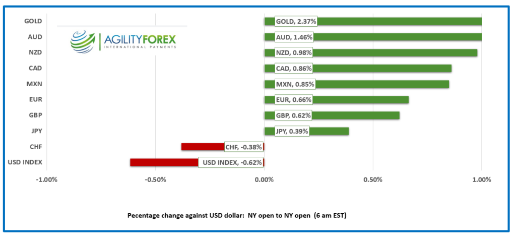 Asian equity indexes closed with strong gains led by a 2.03% rise in Japan’s Nikkei 225 index while Australia’s ASX 200 gained 1.12%. European bourses are in the green with the UK FTSE 100 gaining 0.93%.SPX futures are up 0.35% while the US 10-year Treasury yield inched down to 4.233% from 4.271% yesterday.