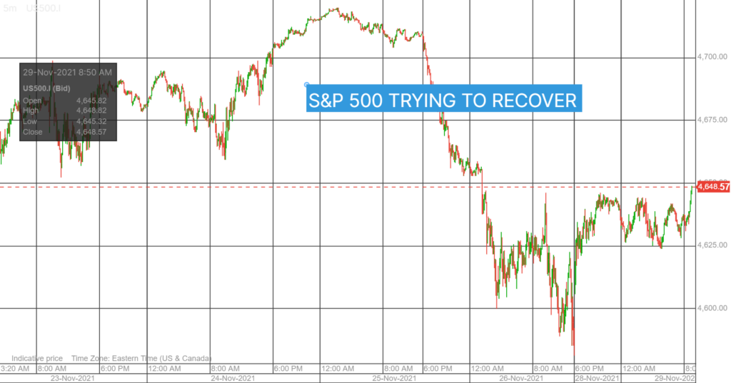 - S&P 500 futures recoup 50% of Friday’s losses, so far