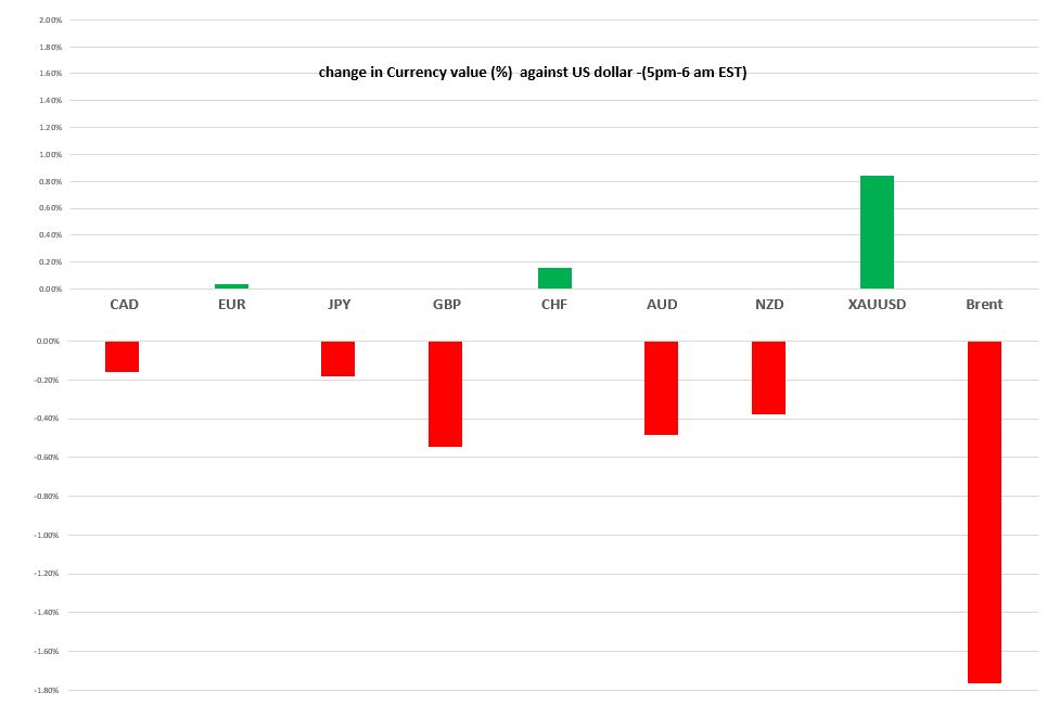 Chart: Currency gain/loss (%) against the US dollar from NY close to NY open (6:00 EST)