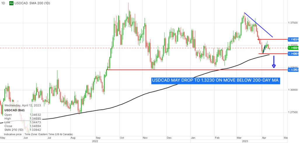 The downtrend from March 10 on a daily chart is intact while prices are below 1.3630 with a move below the 200-day moving average (1.3394) setting the stage for a test of 1.3230.