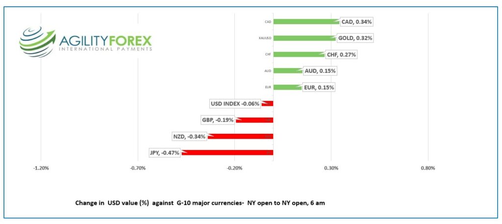- US dollar opens mixed, trades in narrow bands overnight.