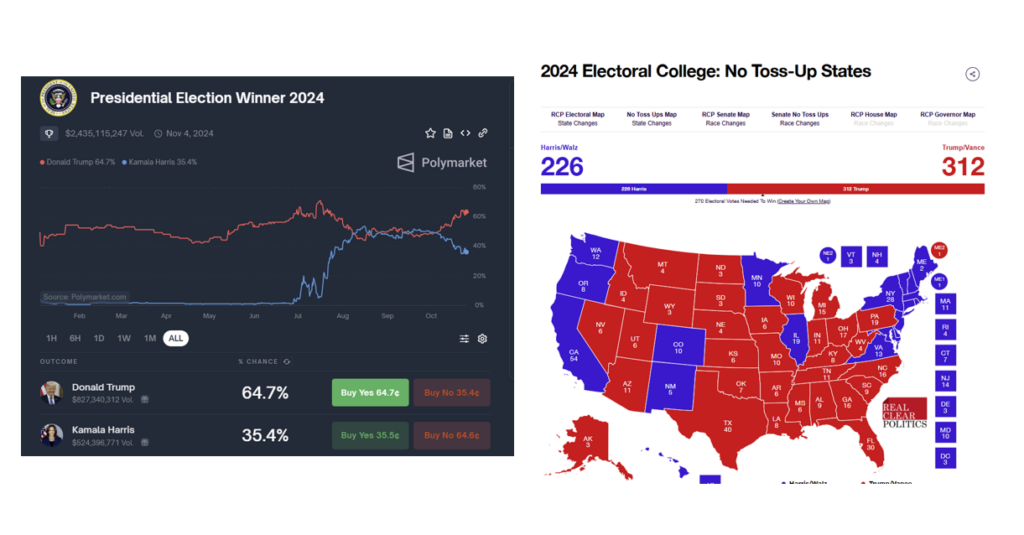 Source: Polymarket and realclearpolling.