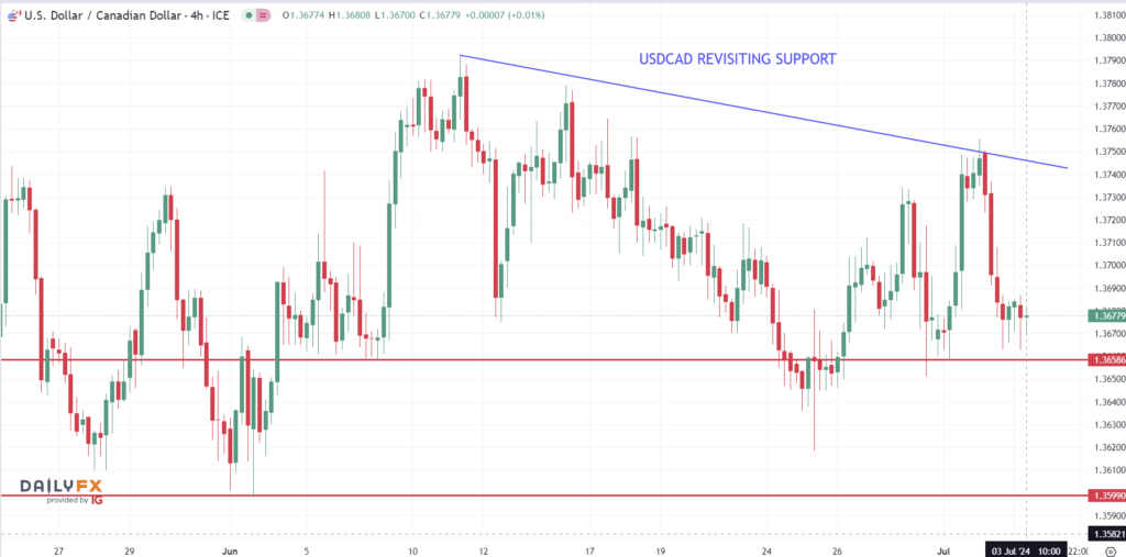 USDCAD dipped from 1.3670 pre-ADP and weekly jobless claims data to 1.3654 after both weaker than expected reports improve hopes for early Fed rate cut.