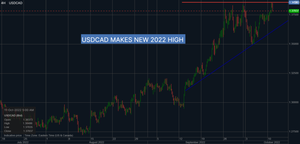 USDCAD rallied Monday, reaching a new 2022 peak before consolidating the gains overnight. Prices dropped to 1.3768 in NY trading when the 10-year US Treasury yield retreated from its overnight peak and lifted S&P 500 futures, although they are still below yesterday’s close.