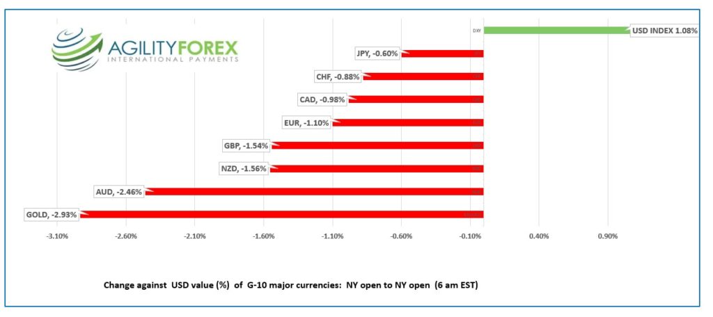 Ukrainian citizens and global financial markets were very unhappy with Putin’s’ targeted missile bombardment of civilians over the weekend. President Biden responded with a pledge to Ukraine President Zelenskiy to deliver advanced missile defence systems. Traders responded with a shift to risk aversion mode.
