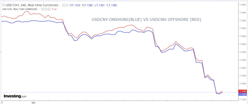 Chart: USDCNY (onshore) vs USDCNH (offshore)